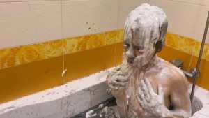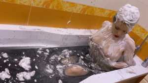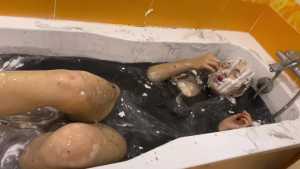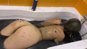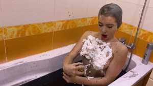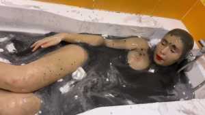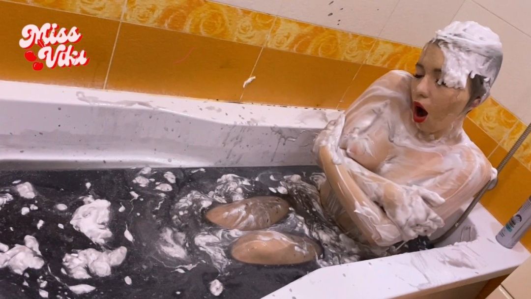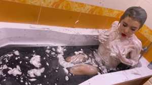 I dive into a bathtub full of black slime and get dirty! I'm completely covered in shaving foam! And I jerk off passionately in it!