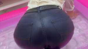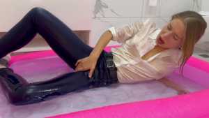 Wet Play with Pussy with Shower Head! Leather Pants!
