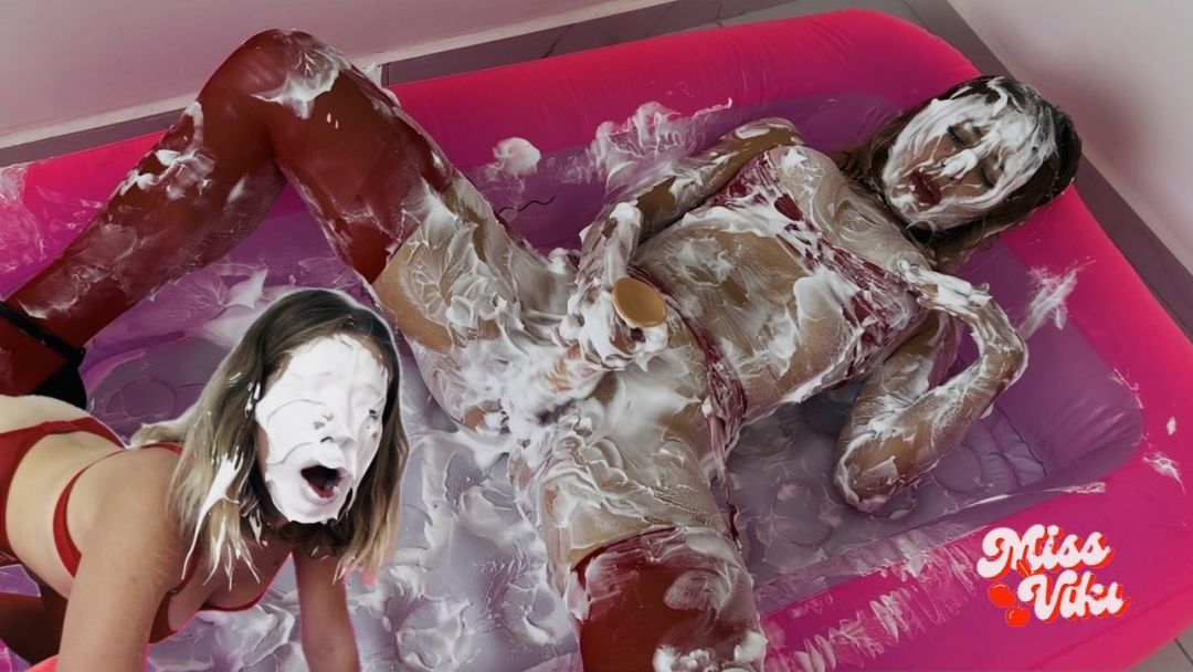 Oh yeaaah! I love it! First, I dip my face in shaving foam! And then I sit on it! I'm completely covered in shaving foam! And I sweetly masturbate my wet, aroused pussy!