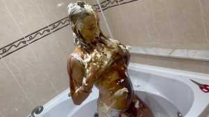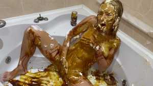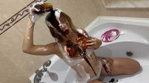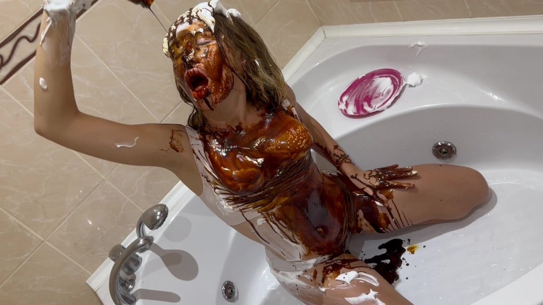 In Coffee Bath Naked I Pour Sweet Sauce over Myself!
