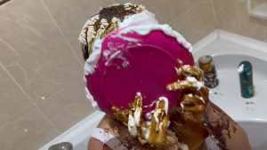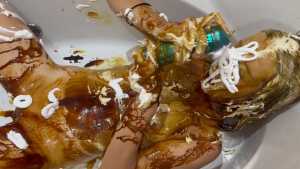 I pour sticky syrup on my head and it slowly flows down me! Then shaving foam pie in the face and on the head! And then I rip my underwear and jerk off hotly!