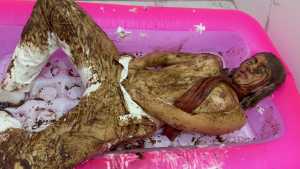 I'm all messy in pudding and shaving foam, masturbating in messy white office pants! Soo hot!
