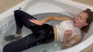 Wetlook and Diving! Sheer Shirt! Leggings and Pantyhose!