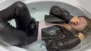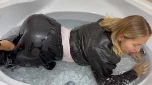 I got wet in very sexy leather outfit! Leather pants and leather jacket! And of course with very sheer white top! It was sooo hot!