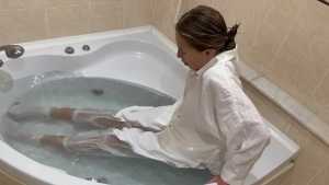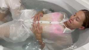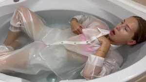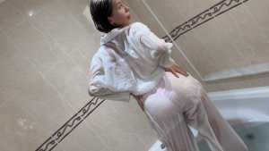 Wetlook in Transparent Top and Shorts with Washing Hair!