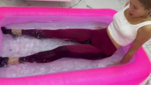 Miss Viki is really stunning in leggings! I hope to watch more lesbians scenes like this in minipool dressed in cotton leggings and high heels!