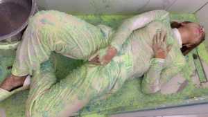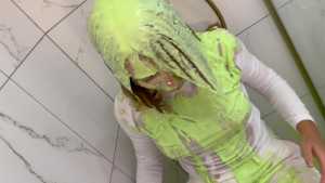 I'm pouring slime all over myself in my white office clothes and shoes! I'm covered in slime from head to toe! All my white clothes are covered in slime, and I'm masturbating passionately in this slime without any underwear! I undress and masturba...