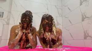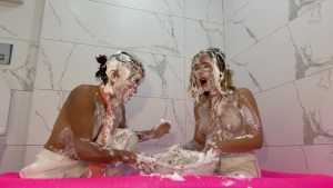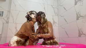 Diana and I are wearing office pants and ties! Pies in our faces! We're dunking each other in the foam and getting really dirty! We're kissing and touching each other passionately!