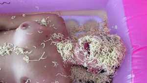 Its Really Messy! I'm covered in a sticky black substance! Pour over the head! I covered from head to toe, I jerk off with a dildo and cum hard!